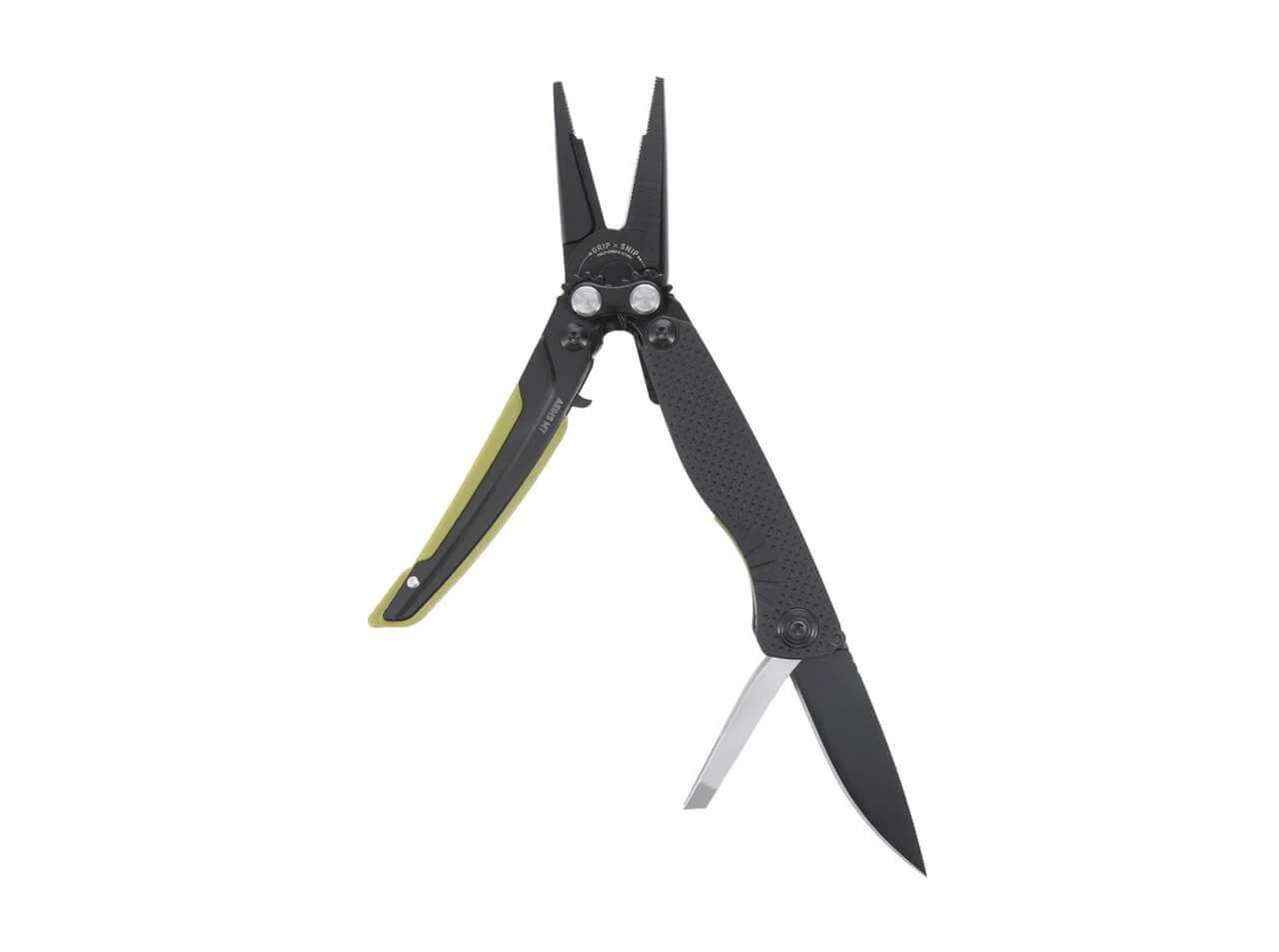 Das Aegis MT Multitool ist beidhändig verwendbar und verfügt über einen robusten, ergonomischen, schwarz-grünen GRN-Griff mit rutschfester Textur, die bei jeder Bedingung optimalen Halt verspricht. Die scharfe Clippoint-Klinge aus rostfreiem 440 Stahl eignet sich für eine Vielzahl von Schneidarbeiten und bietet gleichzeitig eine hervorragende Schnitthaltigkeit und Korrosionsbeständigkeit. Das Aegis MT enthält neben der Hauptklinge eine Spitzzange mit der von SOG patentierten Hebelwirkung, einen Drahtschneider, eine Pinzette und einen Flaschenöffner.