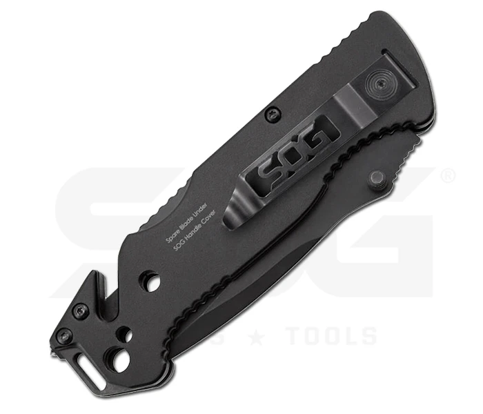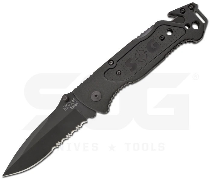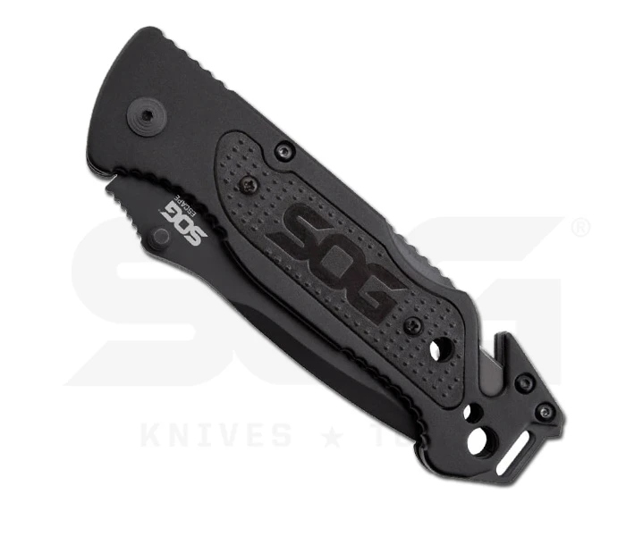 Das Escape ist ein Taschenrettungsmesser und ein robustes Messer für den täglichen Gebrauch. SOG stattet dieses Messer mit einer schwarz bschichteten Klinge aus dem rostfreien 9Cr18MoV Stahl aus. Dieser hat eine Rockwellhärte von 59-60 HRC. Mit der Teilsägewelle können perfekt Schnüre, Schläuche oder faserige Materialien durchtrennt werden. Am Ende des Griffes aus Aluminium ist ein Glasbrecher und ein Gurtschneider für weitere Einsatzmöglichkeiten. Ein rückseitig angebrachter Clip perfektioniert das Escape.