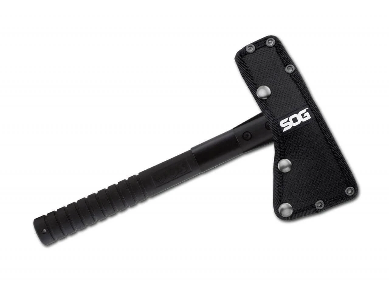 Die FastHawk von SOG ist eine verkleinerte Version des beliebten Vietnam-Tomahawk, und es wird sofort klar, woher der Name stammt. Die kompaktere Bauart im direkten Vergleich zum großen Bruder macht diese Axt deutlich agiler und ermöglicht gleichzeitig ein komfortables Führen! Dennoch ist das FastHawk vielseitig einsetzbar. Sie kann zum hacken, Scheiben zertrümmern, schneiden, hebeln oder es als Sportgerät zum Werfen eingesetzt werden. Die robuste Bauweise verträgt auch derbere Einsätze. Mit Cordura-Gürteletui.