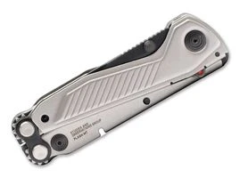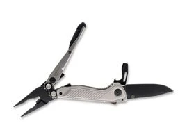 SOG Flash MT Silver & BlackDas SOG Flash MT Multi-Tool macht keine halben Sachen, sondern bietet sieben vollwertige Werkzeuge, ohne dabei Kompromisse einzugehen. Der Zangenkopf verfügt über SOGs Markenzeichen, die Compound Leverage, die durch ihre Zahnradkonstruktion höhere Schneid- und Klemmkräfte erlaubt. Die Hauptklinge aus CRYO D2 öffnet federunterstützt und macht das Flash MT zu mehr als nur einem gewöhnlichen Multifunktionswerkzeug. Der silberne Edelstahlgriff ist texturiert und erhöht damit die Arbeitssicherheit. Werkzeuge: Messer, Kombizange, Schraubendreher (Schlitz und Kreuzschlitz), Drahtschneider, Flaschenöffner und Bithalter.Technische DatenGesamtlänge: 14,2 cmKlingenlänge: 6 cmGewicht: 133 GrammKlingenmaterial: D2Griffmaterial: EdelstahlÖffnungshilfe: DaumenpinÖffnungsmechanismus: FederunterstütztFarbe: SilberKlingenfarbe: Schwarz