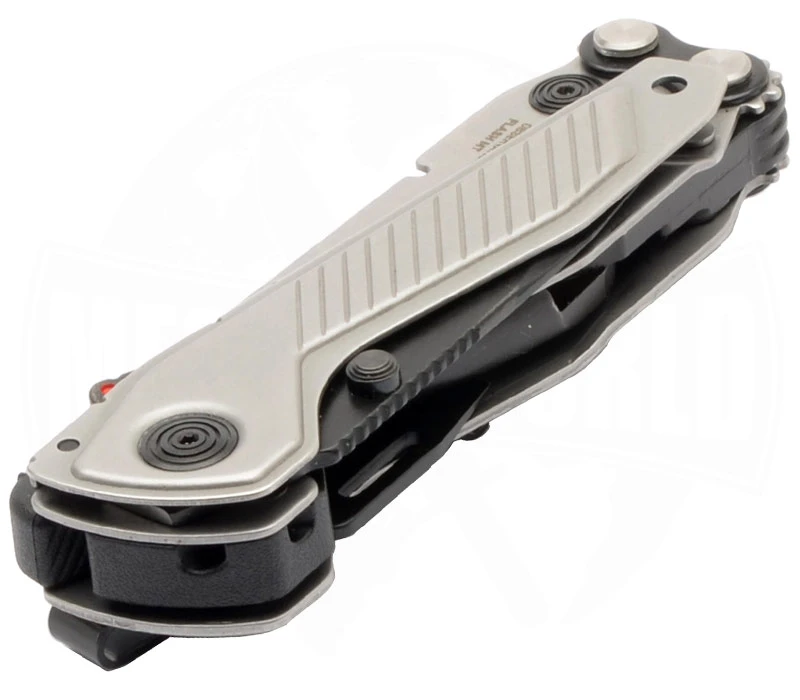 Wer auf der Suche nach einem stylischen Multitool für den Alltag ist, hat es mit dem Flash MT definitiv gefunden. Neben der sehr nützlichen Zange beinhaltet das Werkzeug einen Drahtschneider, einen magnetischen Bithalter für 4 mm Bits, einen Flaschenöffner, einen Schlitzschraubendreher sowie eine 6 cm lange Drop-Point Klinge. Diese besteht aus eisgehärtetem D2 Stahl, welcher für die nötige Schnitthaltigkeit und Stabilität sorgt. Über den Daumenpin kann die Klinge bei geschlossenem Tool, dank der Federunterstützung, spielend leicht geöffnet werden. Mit einem Gewicht von nur 133 g und einem Taschenclip kann das Flash MT angenehm und dezent in der Tasche transportiert werden, was es zum idealen EDC-Multitool für das Büro oder die Freizeit macht.