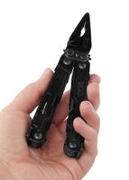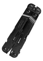 SOG Multitool Poweraccess, Schwarz, SOGMultitool Poweraccess, Schwarz, SOG Kompakt, schlank und komfortabel: Das PowerAccess ist das ultimative EDC-Multitool. Ausgestattet mit SOG´s patentierter zahnradgetriebener Compound Leverage Technologie, wird das Drehmoment an den Zangenbacken verdoppelt, wodurch die Griffigkeit erhalten bleibt und die Abrutschgefahr von Schrauben und Muttern verringert wird. Die nach außen zu öffnenden Komponenten sind bei geschlossenem Multitool leicht zugänglich und rasten sicher ein. Im geschlossenen Zustand verfügt das PowerAccess über einen mittig sitzenden, magnetischen Sechskant-Bithalter, in den jeder handelsübliche 6 mm Sechskant-Bit passt. Das Multitool beinhaltet: – Zange – Greifzange – Drahtschneider (harte und weiche Drähte) – Schlitzschraubendreher (klein, mittel, groß) – Crimpzange – Dosenöffner – Flaschenöffner – Kreuzschlitzschraubendreher – Dreiseitige Feile – 6 cm Klinge (glatte Schneide) – Präzisions-Schraubendreher – Ahle – Lineal – Winkelmesser – Magnetischer Sechskant-Bithalter Details: – Klingenmaterial: 5Cr15MoV – Griffmaterial: Edelstahl – Gesamtlänge: ca. 15 cm – Gesamtlänge (geschlossen): ca. 10,4 cm – Gewicht: ca. 167,3 g