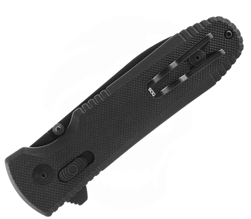 Das Pentagon XR ist durch und durch ein professionelles Messer, das von SOG für taktische Einsätze konzipiert wurde. Das neue Pentagon wurde durch das Feedback der Benutzer angepasst und besitzt jetzt eine 9,2 cm lange Single Eage Spear-Point-Klinge aus kryogenisch wärmebehandeltem CTS XHP-Edelstahl. Der XR-Verschluss von SOG ermöglicht ein reibungsloses, beidhändiges Öffnen mit einer Hand auf drei verschiedene Arten und sichert die Schneide im geöffneten Zustand. Das leichte Heft aus G-10 besitzt eine Ultra-Grip Struktur sowie eine Fingermulde und optimiert die sichere Bedienung und Führung des Messers, das von Links- und Rechtshändern gleichermaßen bedient werden kann. Der umsetzbare, stabile Clip befestigt das Messer sicher an der Ausrüstung.