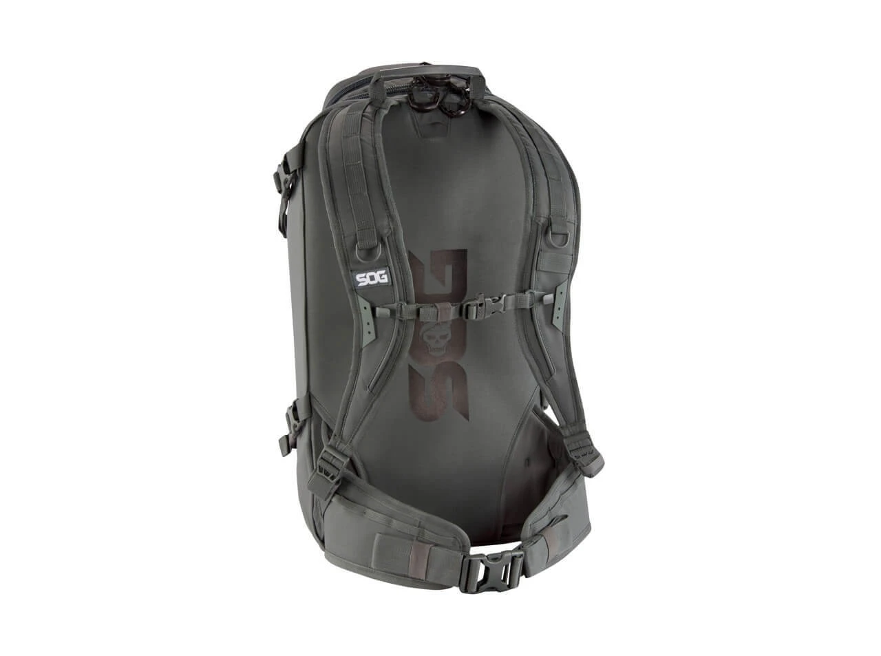 Der SOG Scout 24 ist ein vielseitig einsetzbarer 24 Liter Rucksack mit Hypalon MOLLE-Bereich zur Befestigung von Ausrüstungsgegenständen. Großes Hauptfach mit Vierfach-Reißverschluß zum schnellen und einfachen Packen auch von längeren Gegenständen. Deckel mit Schutzfunktion gegen Stoßeinwirkungen von außen. Inklusive Trinkblasenfach und Labtopfach.