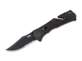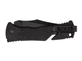 SOG Trident BlackDas SOG Trident ist ein wahres Multitalent. Der Piston Lock sichert die federunterstützte AUS-8-Klinge, die geschlossen zusätzlich gesichert werden kann, um die Funktion des Gurtschneiders zu unterstützen. Durch eine Ausparung im GRN-Griff kann die Klinge als Leinencutter fungieren. Mit umsetzbarem Clip (l/r).Technische DatenGesamtlänge: 21,59 cmKlingenlänge: 9,53 cmGewicht: 102,6 Gramm136Klingenmaterial: AUS-8Griffmaterial: GFKVerschluss: Piston LockÖffnungshilfe: DaumenpinÖffnungsmechanismus: FederunterstütztKlingenfarbe: SchwarzLumen: Öffnungshilfe: DaumenpinÖffnungsmechanismus: FederunterstütztKlingenfarbe: Schwarz