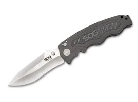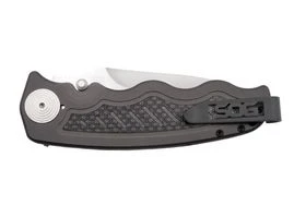 SOG Zoom CarbonDas SOG Zoom ist ein leichtes, kompaktes Taschenmesser der schnell zu öffnen ist. Die federunterstützte Klinge aus CPM-S-30V springt schon bei leichtem Druck gegen den Daumenpin auf und wird durch den Druckknopf gesichert. Der eloxierte Aluminiumgriff mit Kohlefaser-Einsätzen macht das Messer zu etwas wirklich Einzigartigem. Dank des dünnen Profils und des umsetzbaren Clips ist es die perfekte Wahl für den täglichen Gebrauch.Technische DatenGesamtlänge: 20,8 cmKlingenlänge: 9,1 cmKlingenstärke: 2,54 mmGewicht: 122 Gramm180Klingenmaterial: CPM-S-30VGriffmaterial: AluminiumVerschluss: Button LockÖffnungshilfe: DaumenpinÖffnungsmechanismus: FederunterstütztKlingenfarbe: UnbeschichtetLumen: Öffnungshilfe: DaumenpinÖffnungsmechanismus: FederunterstütztKlingenfarbe: Unbeschichtet